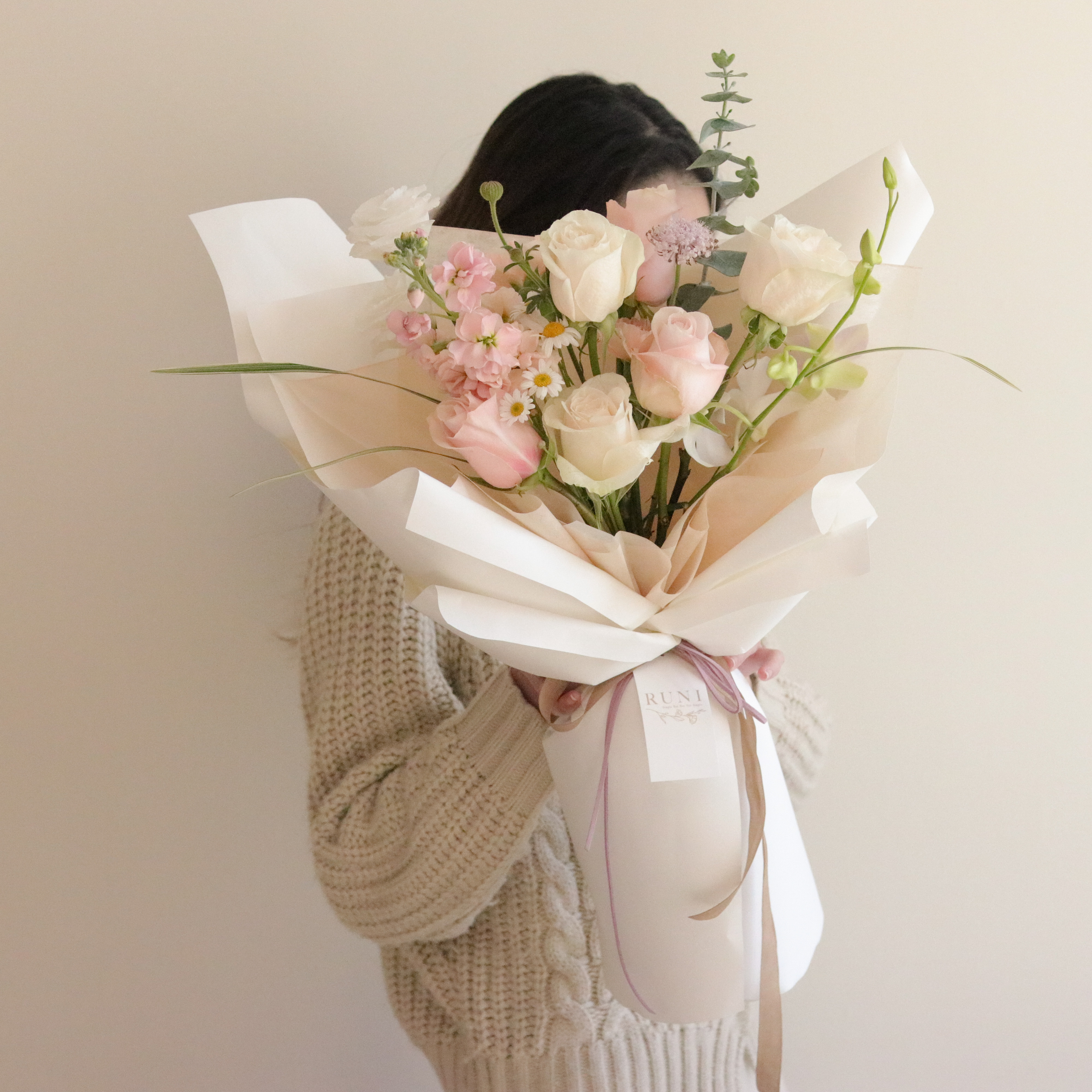 那我想送你一束粉紅泡泡的花束配上妳的美!