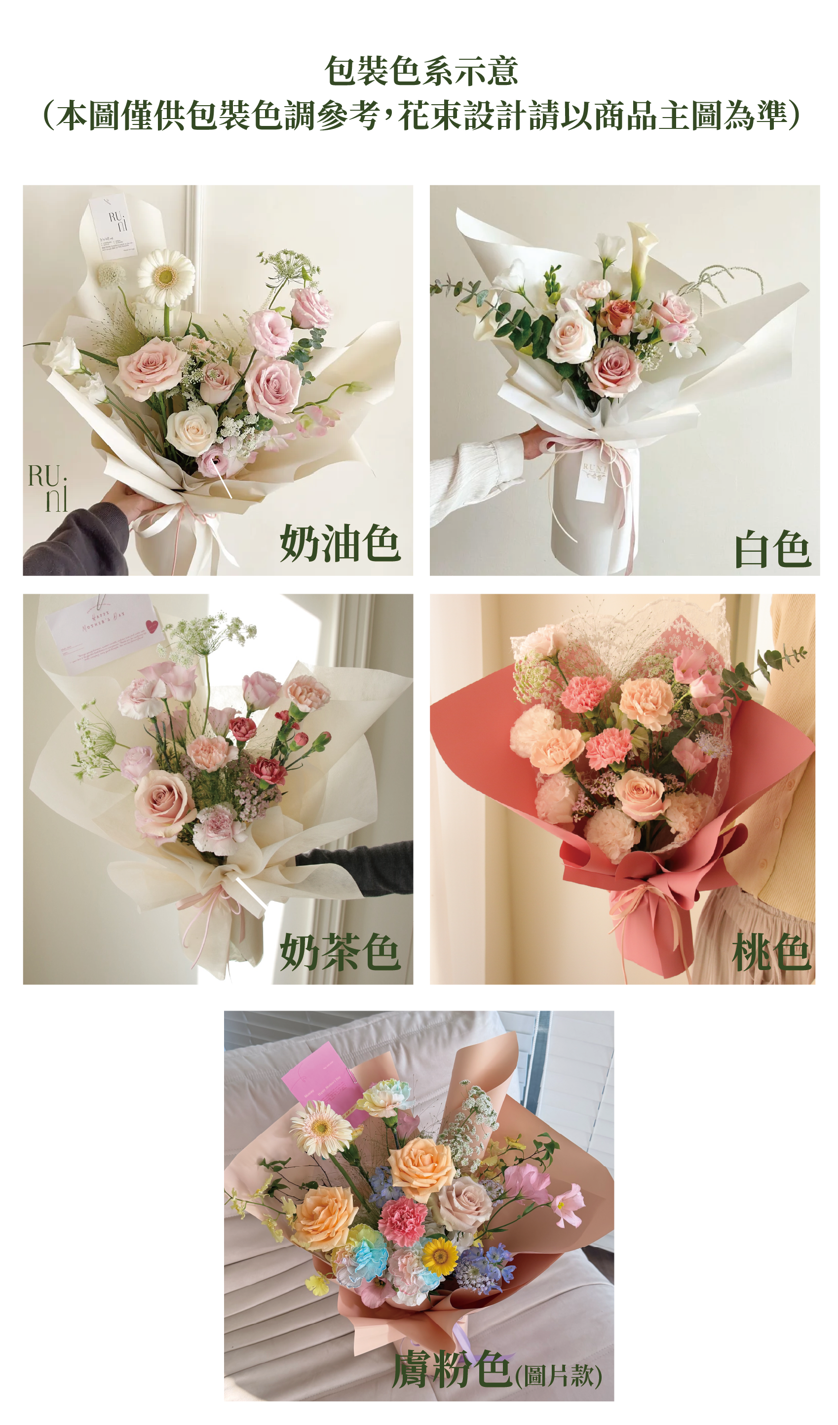 花材皆為天然產物,故每批到貨顏色、花朵大小皆會有所不同,可以接受者再下單(網站皆有訂購須知,確認訂購者一律視為同意訂購須知內容)