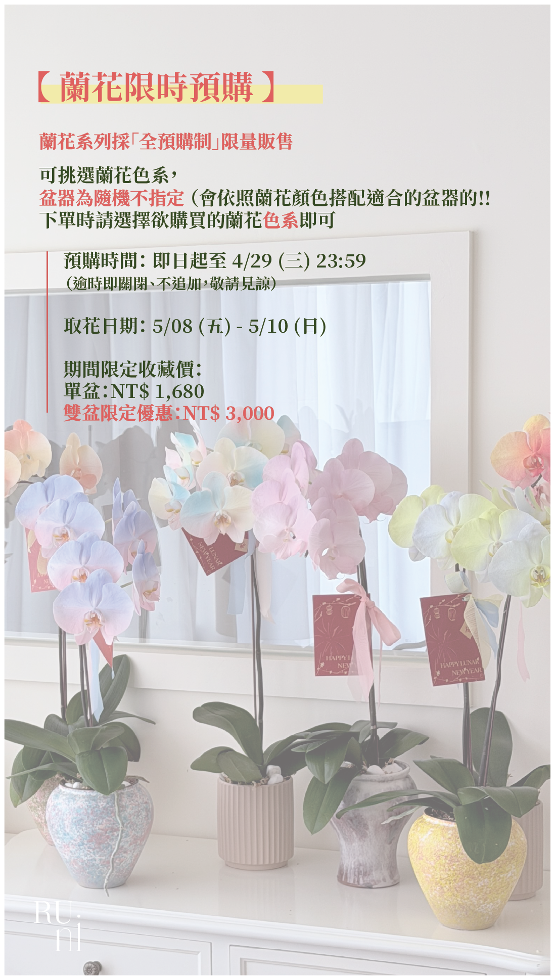 蘭花系列採「全預購制」限量販售